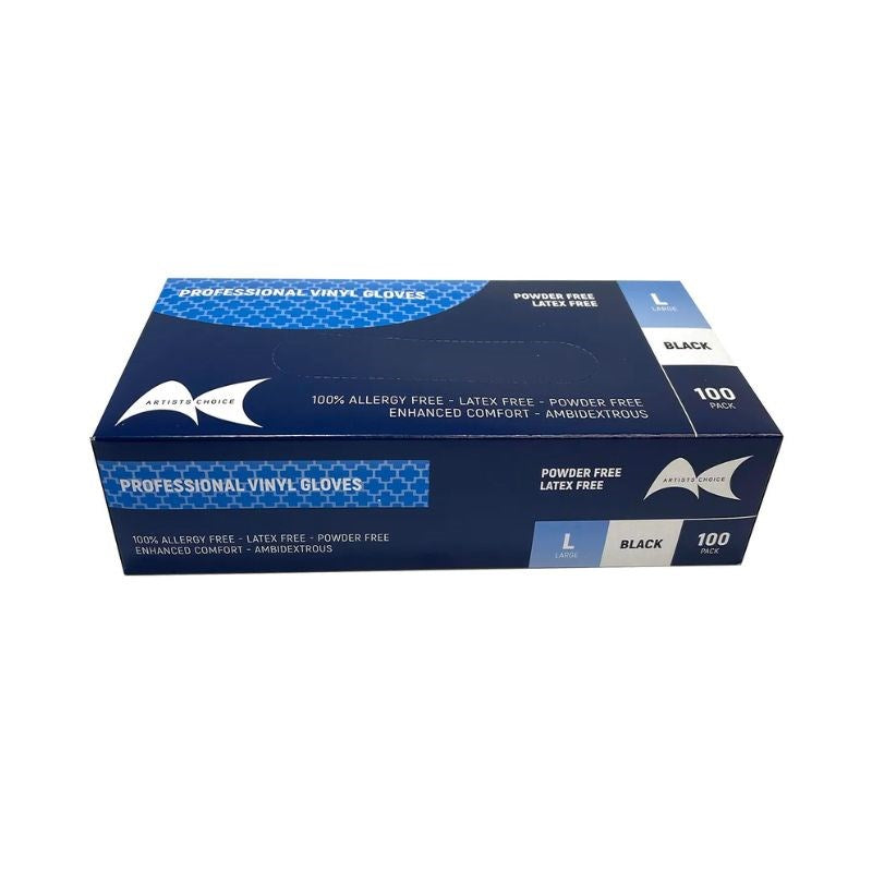 Artists Choice Powder Free Vinyl Black Gloves- Large