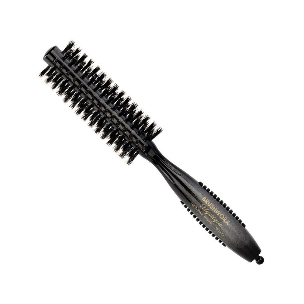 Experience the transformative power of tourmaline—naturally neutralising static, minimising frizz, and boosting radiant shine. The Brushworx Mystique Radial Hair Brush Extra Small harnesses tourmaline’s high negative ion output for smoother, silkier, and shinier results. A must-have for blow-drying, this radial brush delivers precision styling with its tourmaline-coated barrel and premium boar bristles. Perfect for smoothing, straightening, volumising, or adding movement, it also distributes the scalp’s natural oils for a soft, polished finish. Designed with a rubberised, non-slip handle for ultimate comfort and control. From Brushworx—the 100% Australian-owned brush experts.