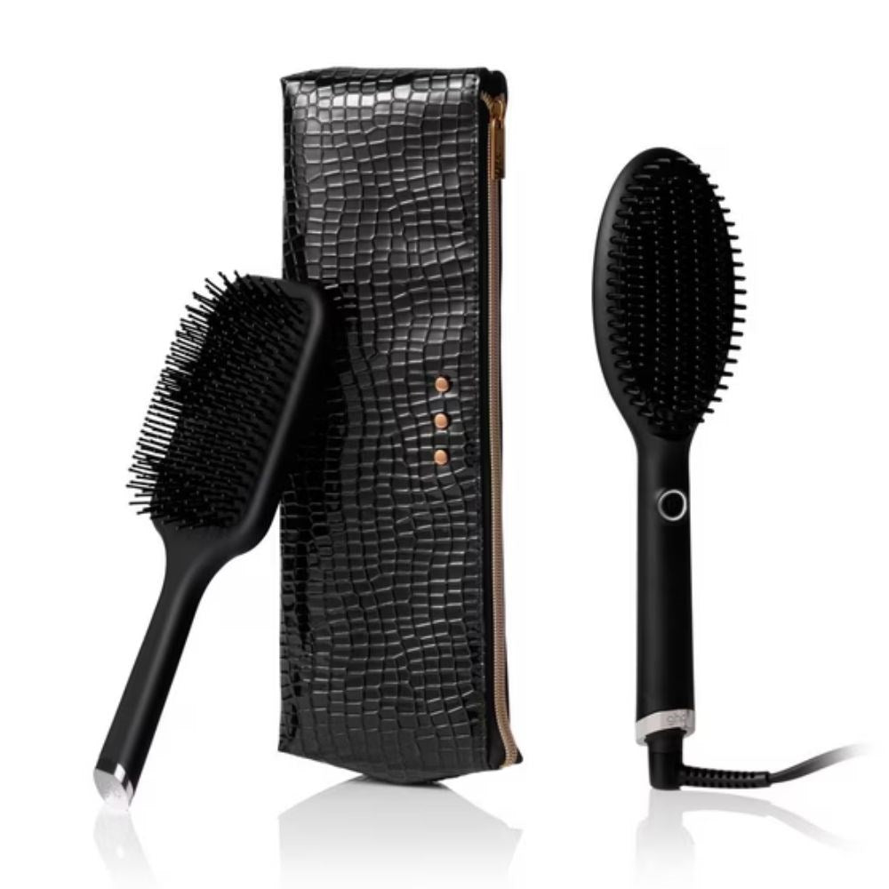 Experience salon-smooth results in minutes with the GHD Glide Gift Set, the ultimate styling duo designed to tame frizz, refresh second-day hair and add instant shine. Featuring the iconic GHD Glide Hot Brush, the GHD Paddle Brush, and a Heat-Resistant Storage Bag, this premium set delivers effortless styling for busy mornings or quick touch-ups.