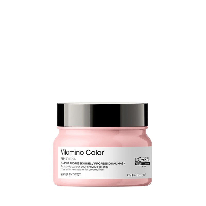 L’Oréal Professionnel’s Vitamino Color mask intensely nourishes colour-treated hair, allowing colour to last longer. Coloured hair is 5 times shinier* and appears brighter and more radiant. Hair feels lighter, manageable and soft. Formula enriched with resveratrol, a powerful anti-oxydant for a perfect salon coloured hair.