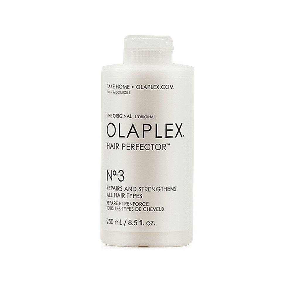 Available as the take-home portion of the OLAPLEX System, No.3 Hair Perfector enables the maintenance of strong, healthy hair in between professional services. This home treatment can be used with or without the salon service, and features the same patented ingredient as No.1 and No.2. This revolutionary component, Bis-Aminopropyl Diglycol Dimaleate, works by finding single sulfur hydrogen bonds and cross-linking them back together to form disulfide bonds. Disulfide bonds are broken through chemical procedures such as colouring, thermal interference like heat and UV damage, and mechanical processes like brushing and combing. With this single active ingredient repairing and reinforcing the hair fibre, the result is stronger and healthier hair with enhanced colour longevity and vibrancy. No.3 Hair Perfector works to repair the external structure of the hair when left on for a minimum of 10 minutes. The longer it is left in the hair, the more effective it will be. No.3 is not a conditioner or leave-in treatment, therefore it is recommended to shampoo and rinse with No.4 Bond Maintenance Shampoo and No.5 Bond Maintenance Conditioner as part of the OLAPLEX 3-4-5 regimen. No.3 can prepare the hair for a big colour change and makes colour last longer between services. OLAPLEX is colour-safe, vegan, PH balanced and completely free from cruelty, DEA, aldehydes, formaldehyde, silicone, parabens, sulphates, phosphates, gluten and nuts. Join the OLAPLEX revolution for a truly one-of-a-kind solution to restoring the natural texture of hair, boosting its elasticity and transforming its health.