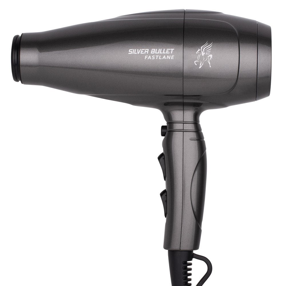 Introducing the Silver Bullet Fastlane Hair Dryer, the ultimate time-saving solution designed with your efficiency in mind. We understand that time is precious, which is why we've developed this professional-quality hair dryer that combines exceptional speed and heat, allowing you to significantly reduce your drying time without compromising on quality.