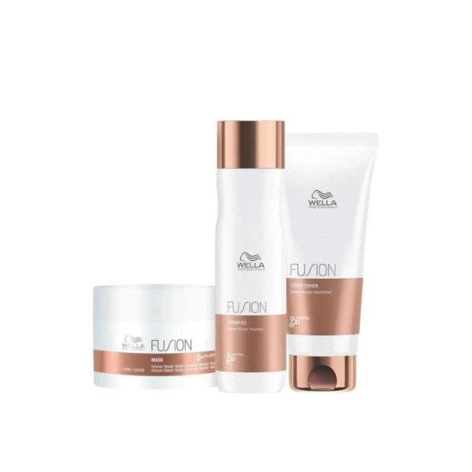 The Wella Professionals Fusion Trio Pack is expertly formulated to repair and protect damaged hair, delivering intense nourishment and strength. This set includes the Fusion Shampoo, Conditioner, and Mask, all designed to reduce breakage and improve hair resilience.